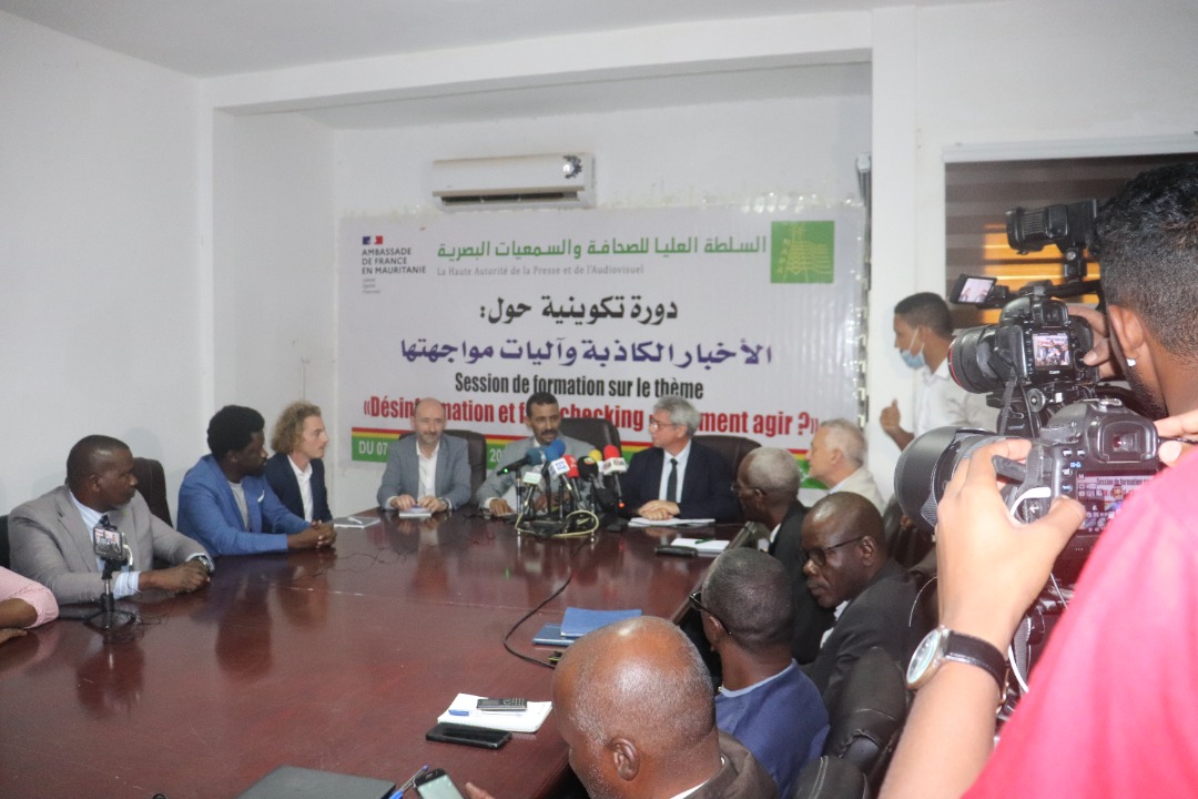 Le Président de la HAPA El-Hussein Ould Meddou a ouvert ce matin 7 novembre 2022 , au siège de la HAPA une importante session de formation sur le theme :"Désinformation et fact-checking : comment agir ? Cette rencontre se déroule en collaboration avec l'ambassade de France, L'École Publique du Journalisme de Tour (EPJT) et Médias et Démocratie .