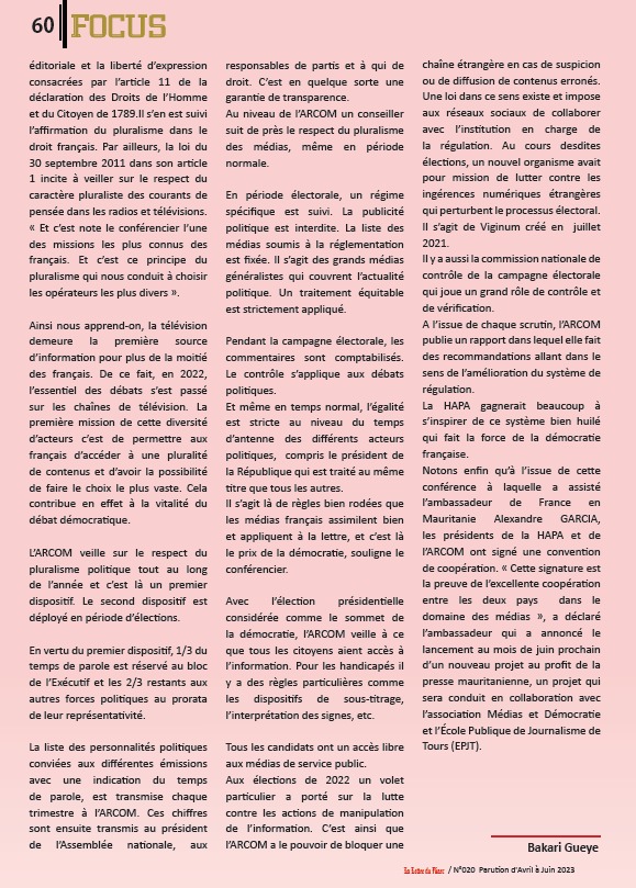 Le bulletin couvre egalement une large partie des activités de la haute l'Autorité
