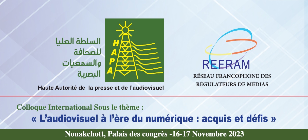 La Haute Autorité de la presse et de l’audiovisuel de Mauritanie (HAPA) organisait les 16 et 17 novembre 2023 un colloque sur le thème « l’audiovisuel à l’ère du numérique : acquis et défis ». Cette rencontre réunissait des représentants de haut niveau des instances membres du REFRAM.