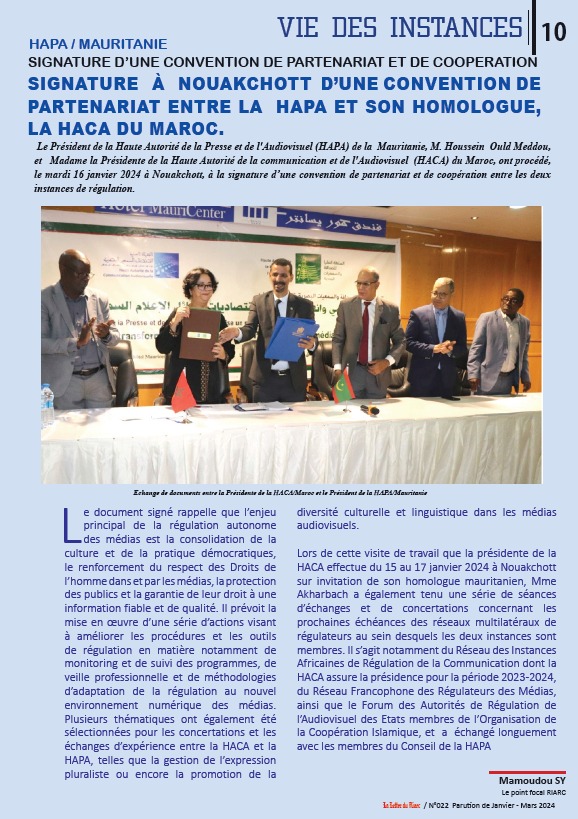 _ La signature , d’une convention de partenariat et de coopération entre la HAPA et son homologue, la HACA du Maroc en visite à NKTT