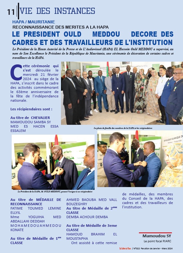 Le Bulletin bimensuel du Réseau des Instances Africaines de Régulation de la Communication (RIARC) est paru avec ses rubriques relatant la vie et les activités des Réseaux